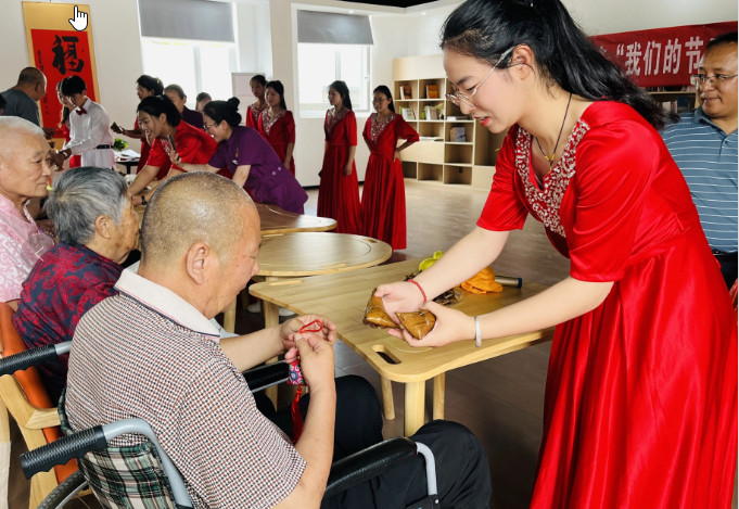 端午佳节到来之际,我校师生志愿者们来到北海街道综合养老服务中心,为老年朋友们送上端午节祝福。