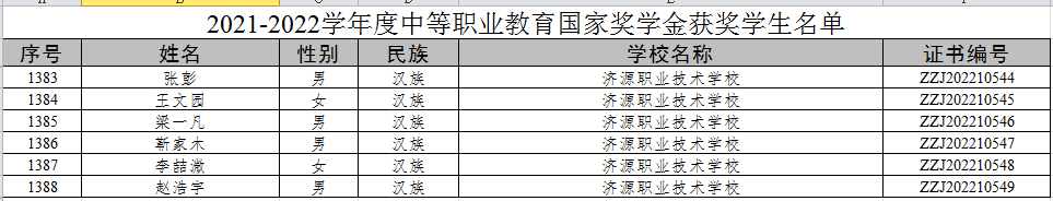 近日,教育部、人力资源社会保障部公布2021—2022学年度中等职业教育国家奖学金获奖学生名单,我校共有6名学生获奖。一起来看名单——