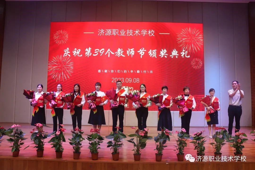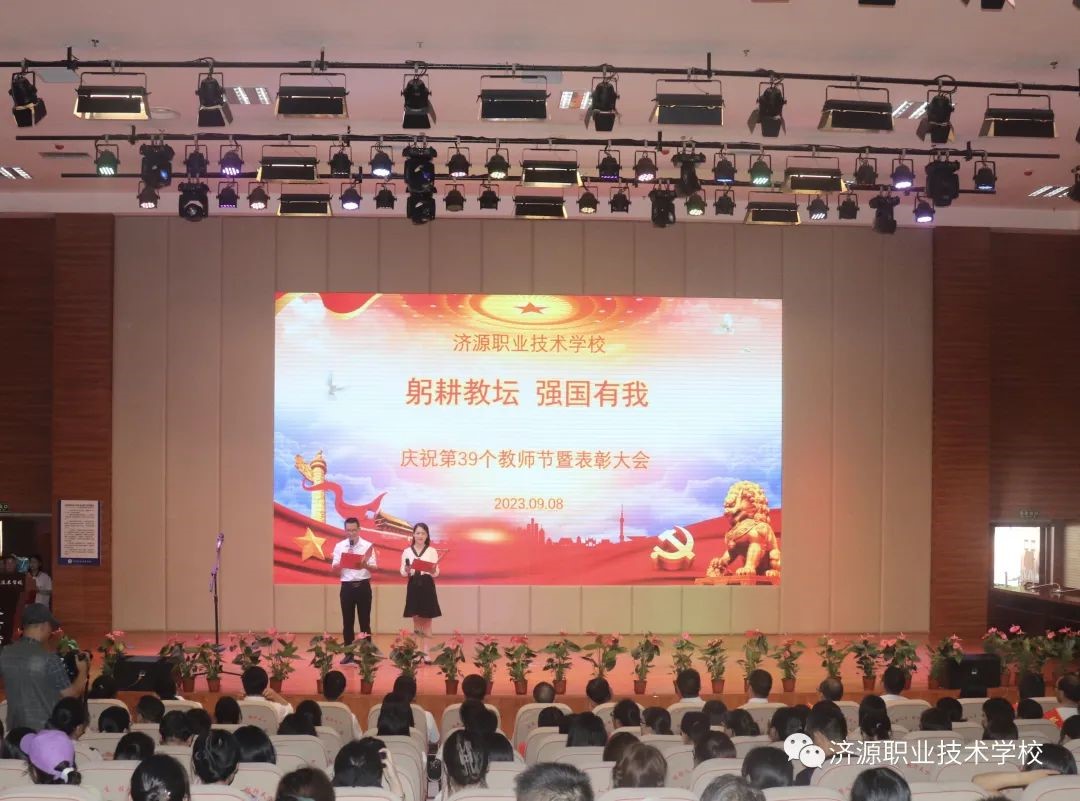 赵杰副校长宣读了《济源职业技术学校关于2023年教师节表彰的决定》。本次表彰大会,学校共评选出2022—2023学年优秀班主任14人、优秀教师10人、先进工作者5人、教学先进个人10人、教书育人楷模10人。