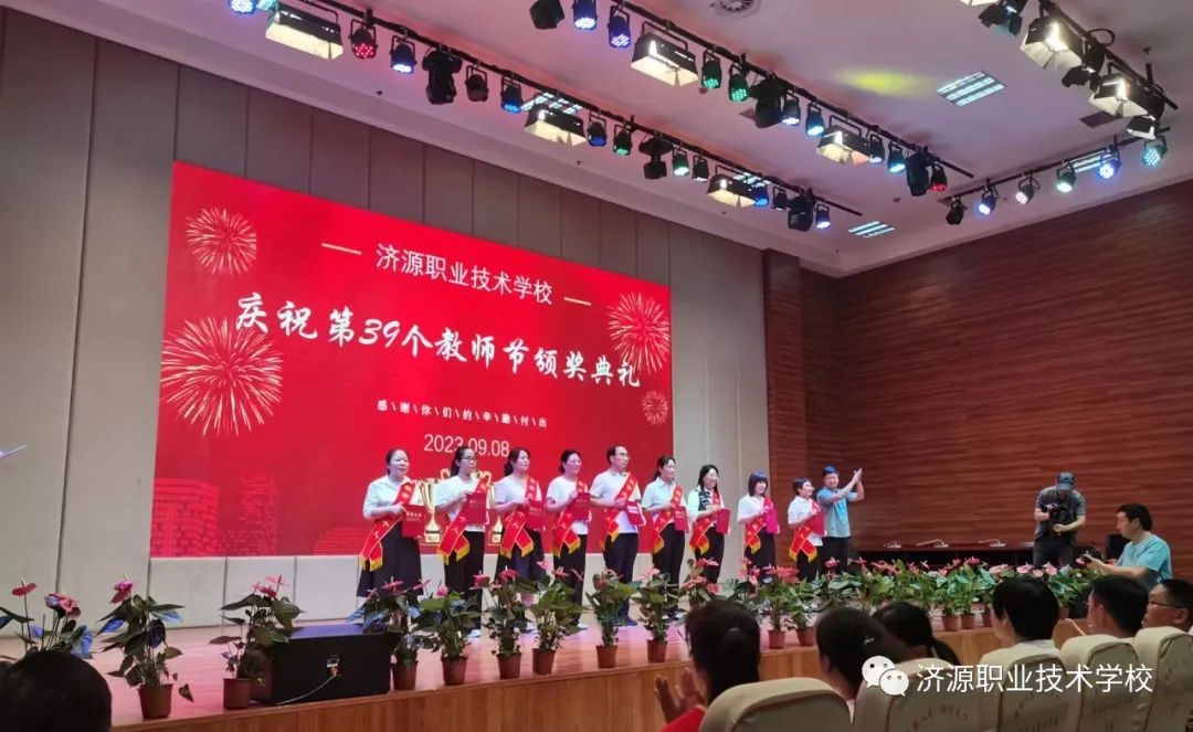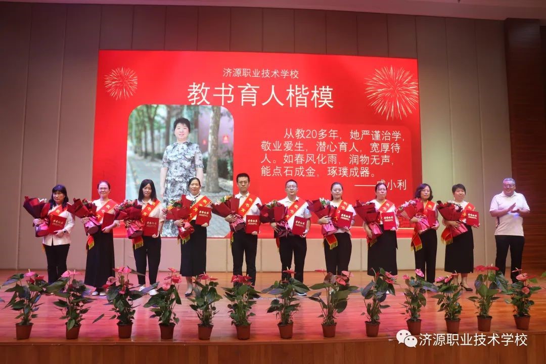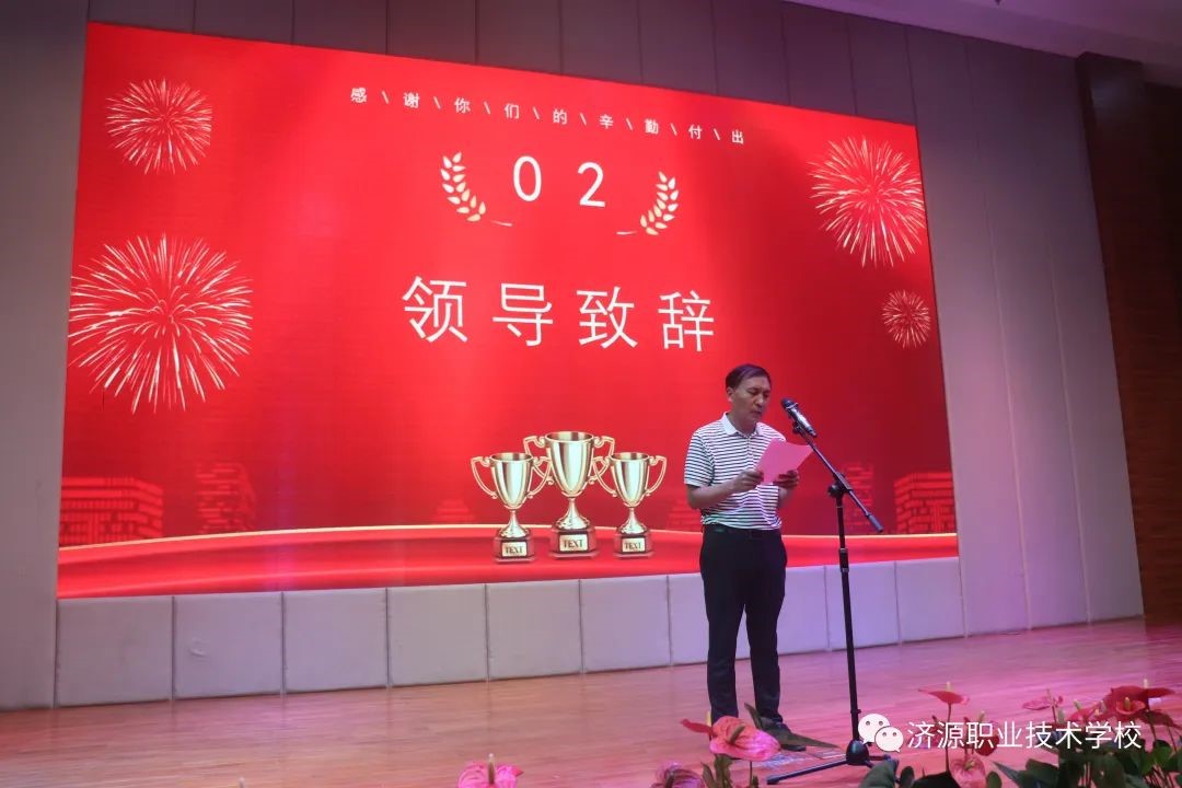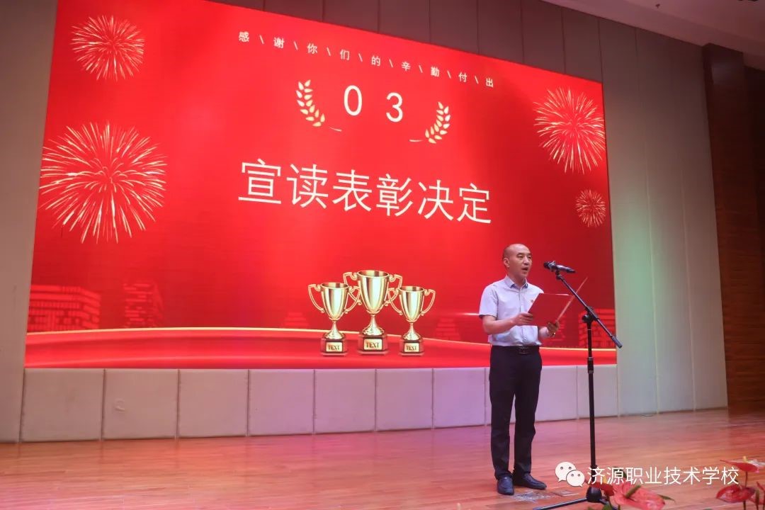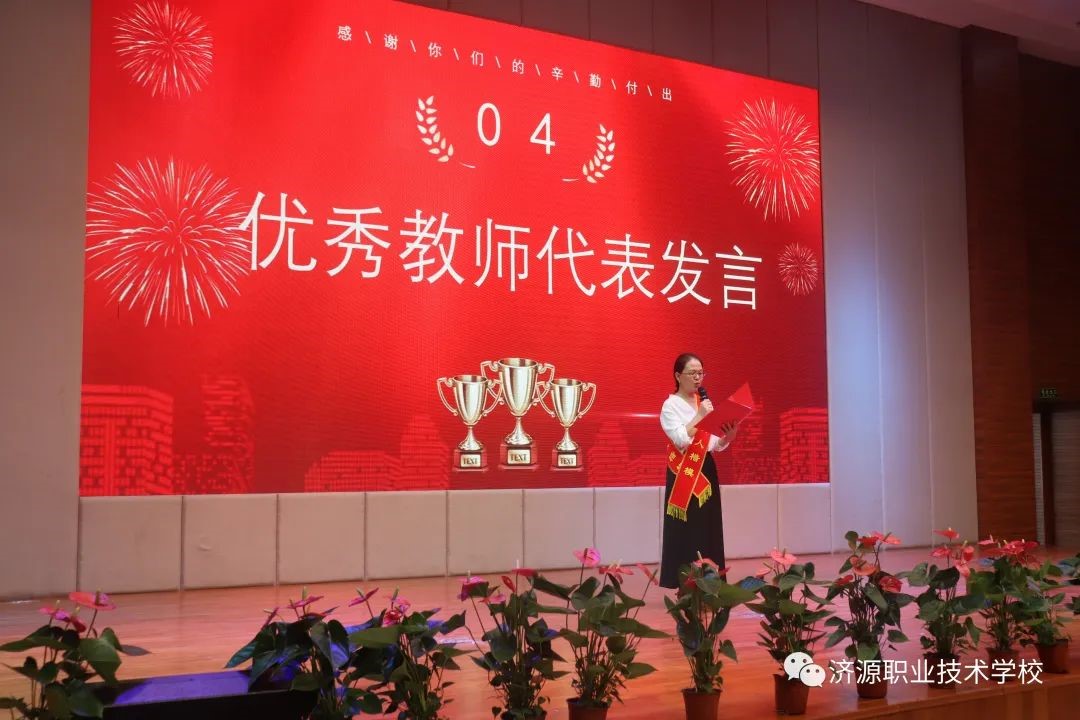 在颁奖环节,学校领导为受表彰的教师进行颁奖。每一位教师接过的不只是一份荣誉证书,更是学校对自己一年来工作的认可,也饱含了学校的殷殷期盼。希望获得荣誉的先进个人,谦虚谨慎,再接再厉,在职业教育发展中做出新的更大的贡献;希望全体教师以先进个人为榜样,坚定教育理想,厚植教育情怀,立足本职岗位,为济源职业技术学校美好的明天奋勇努力。