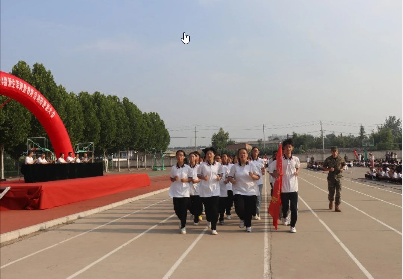 同学们在教官的指挥下,喊着嘹亮的口号,迈着坚定的步伐,从容不迫的进入检阅区。转向、蹲下、起立、敬礼,一个个整齐划一的动作,一张张精神饱满的脸庞,成为操场上一道靓丽的青春风景线。