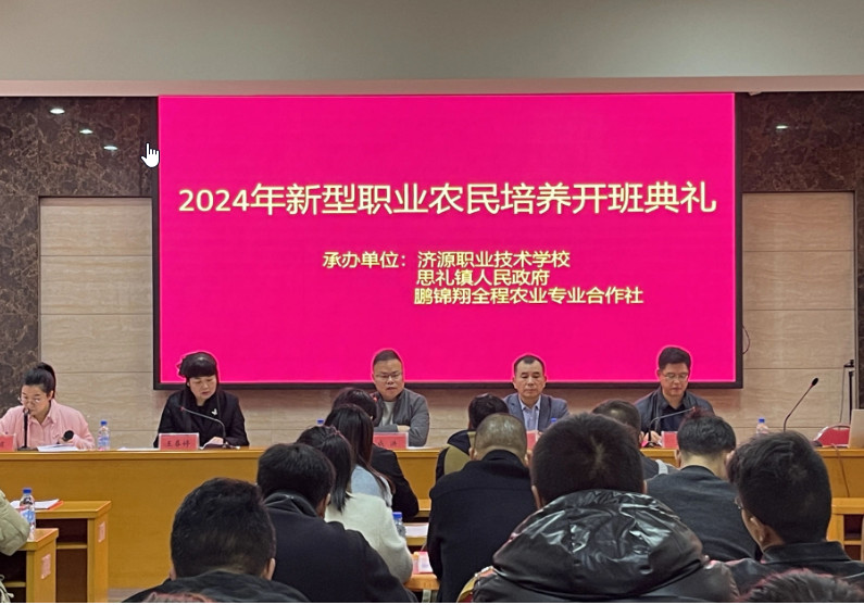 为进一步加大力度培养新型职业农民,为乡村振兴提供农业技术和实用人才,打造一支“有文化、懂技术、善经营、会管理”的新型职业农民队伍,为现代农业发展、农民增收、农村繁荣提供人才支撑。11月16日,由济源职业技术学校、思礼镇人民政府、鹏锦翔全程农业专业合作社联合举办的新型职业农民培养园艺技术班开班仪式在思礼镇政府二楼会议室举行,济源职业技术学校校长陈峰、思礼镇武装部部长成洪、鹏锦翔全程农业专业合作社王春婷经理及全市2024级50余名新型职业农民学员参加了此次开班仪式,开班仪式由济源职业技术学校教学管理处主任李霞霞主持。