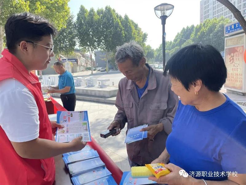 学校团委组织青年志愿者走进玉泉街道社区,为群众讲解交通安全知识,宣讲“一盔一带”倡议书,建立文明交通志愿岗,用实际行动承诺践诺,彰显“奉献、友爱、互助、进步”的志愿者精神。
