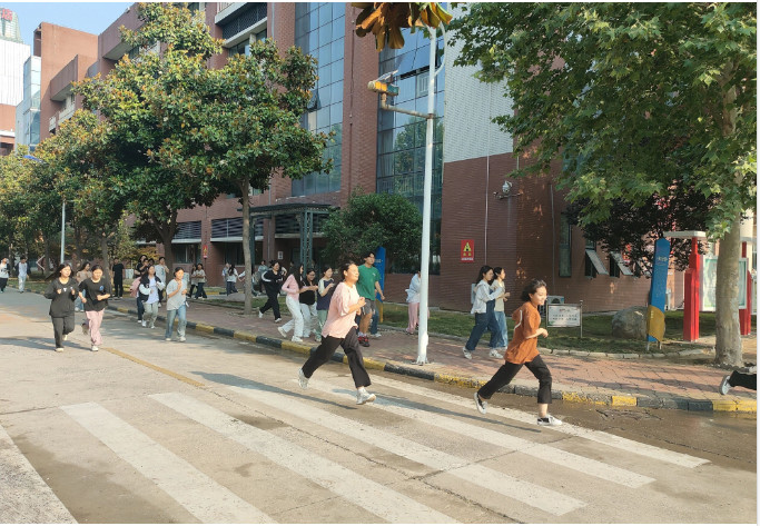 第二声警报声响起后,同学们按照指定的安全出口和疏散路线,迅速有序跑到学校广场集合,并立即清点人数并上报。在本次演练过程中,同学们表现出快速的应急能力和良好的组织秩序。
