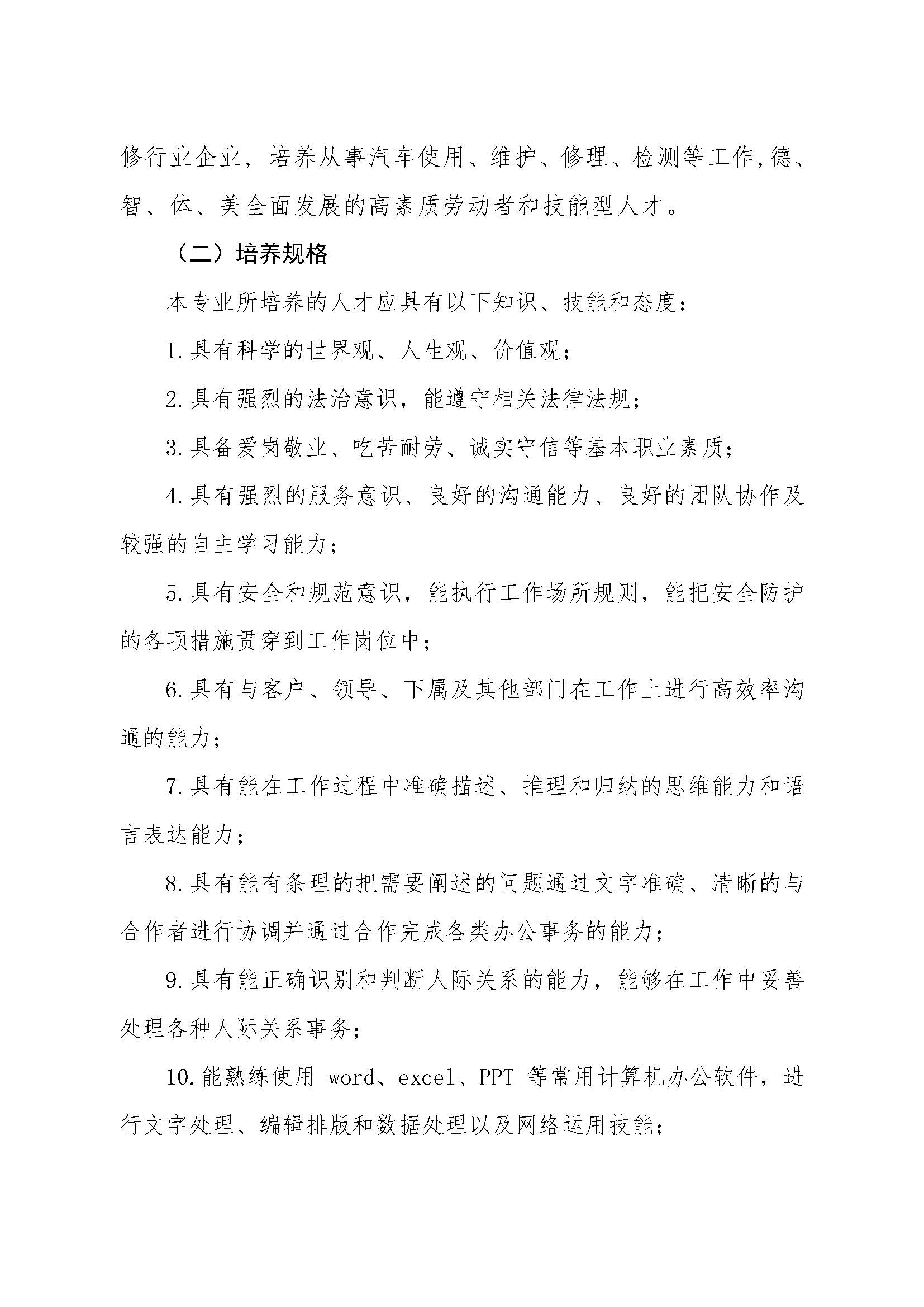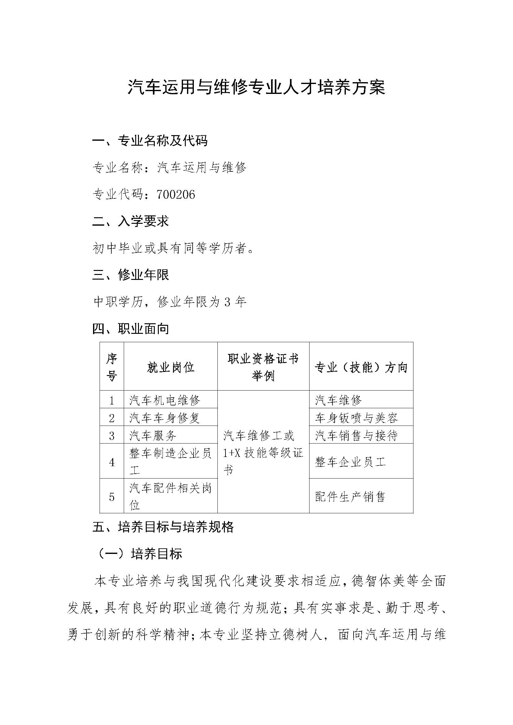 济源职业技术学校汽车运用与维修专业人才培养方案