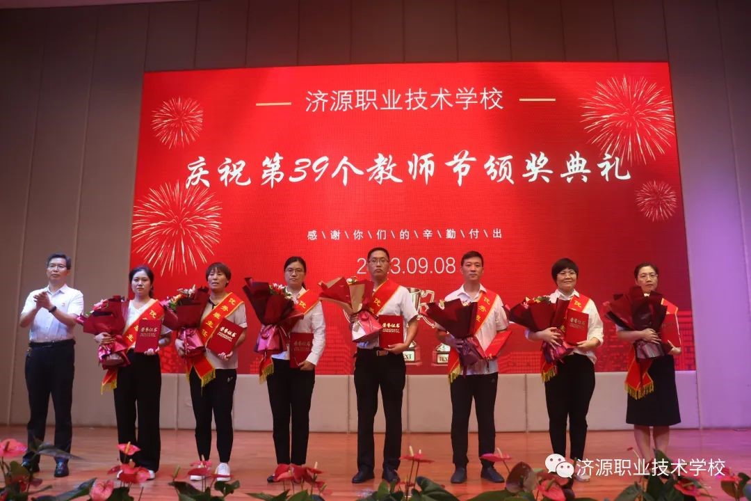 赵杰副校长宣读了《济源职业技术学校关于2023年教师节表彰的决定》。本次表彰大会,学校共评选出2022—2023学年优秀班主任14人、优秀教师10人、先进工作者5人、教学先进个人10人、教书育人楷模10人。